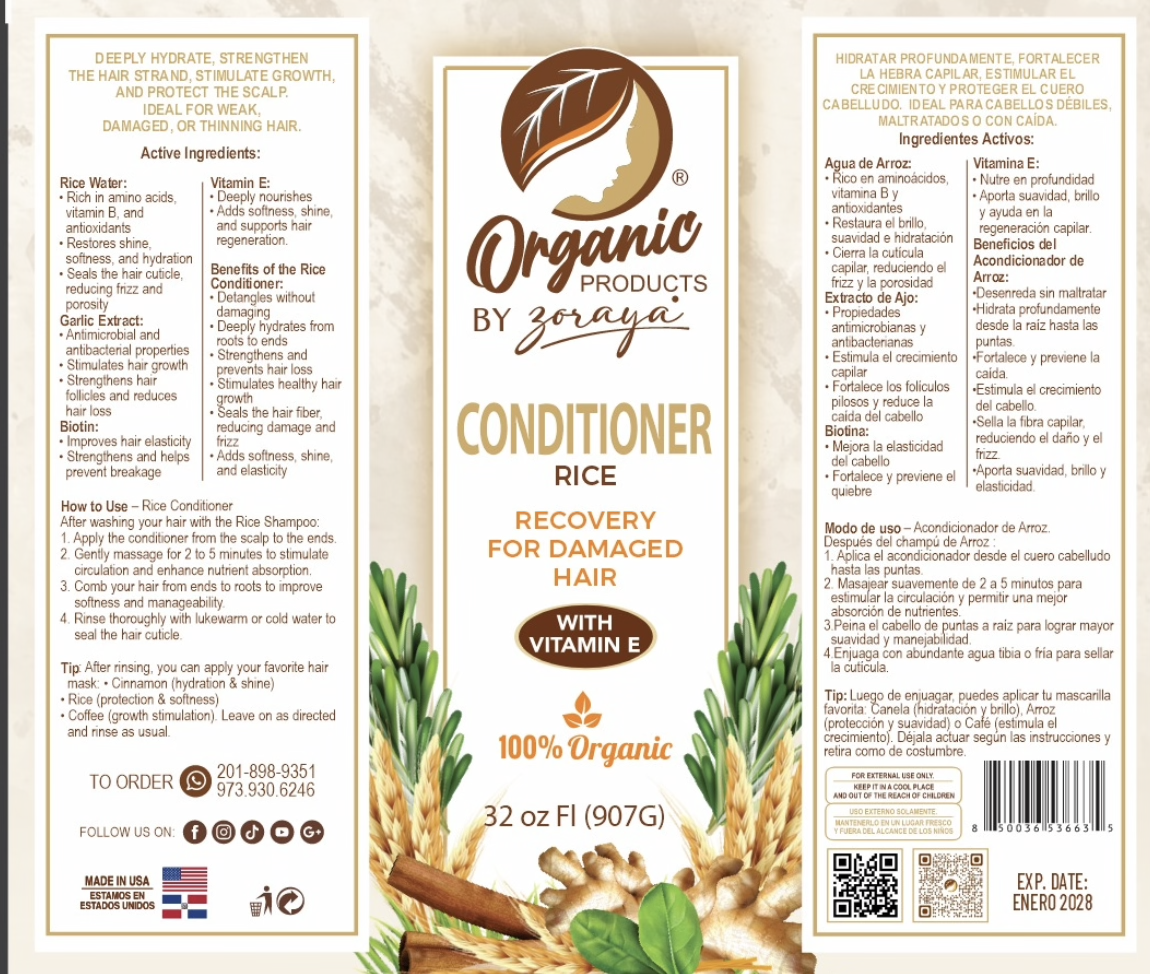Organic Products by Zoraya está diseñado para ayudar a desenredar el cabello con facilidad, al mismo tiempo que lo hidrata y lo fortalece. A continuación te detallo el modo de uso y los ingredientes comunes en este tipo de acondicionador: